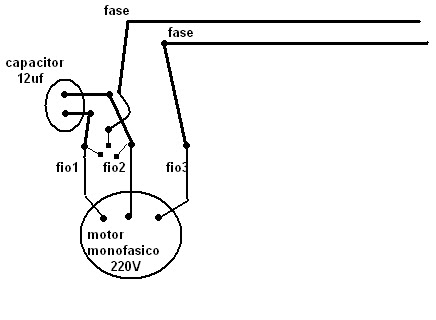 um motor monofasico tem 3 fios, sendo esses fios um é comum, um é rotação direita, e um é rotação esquerda.
